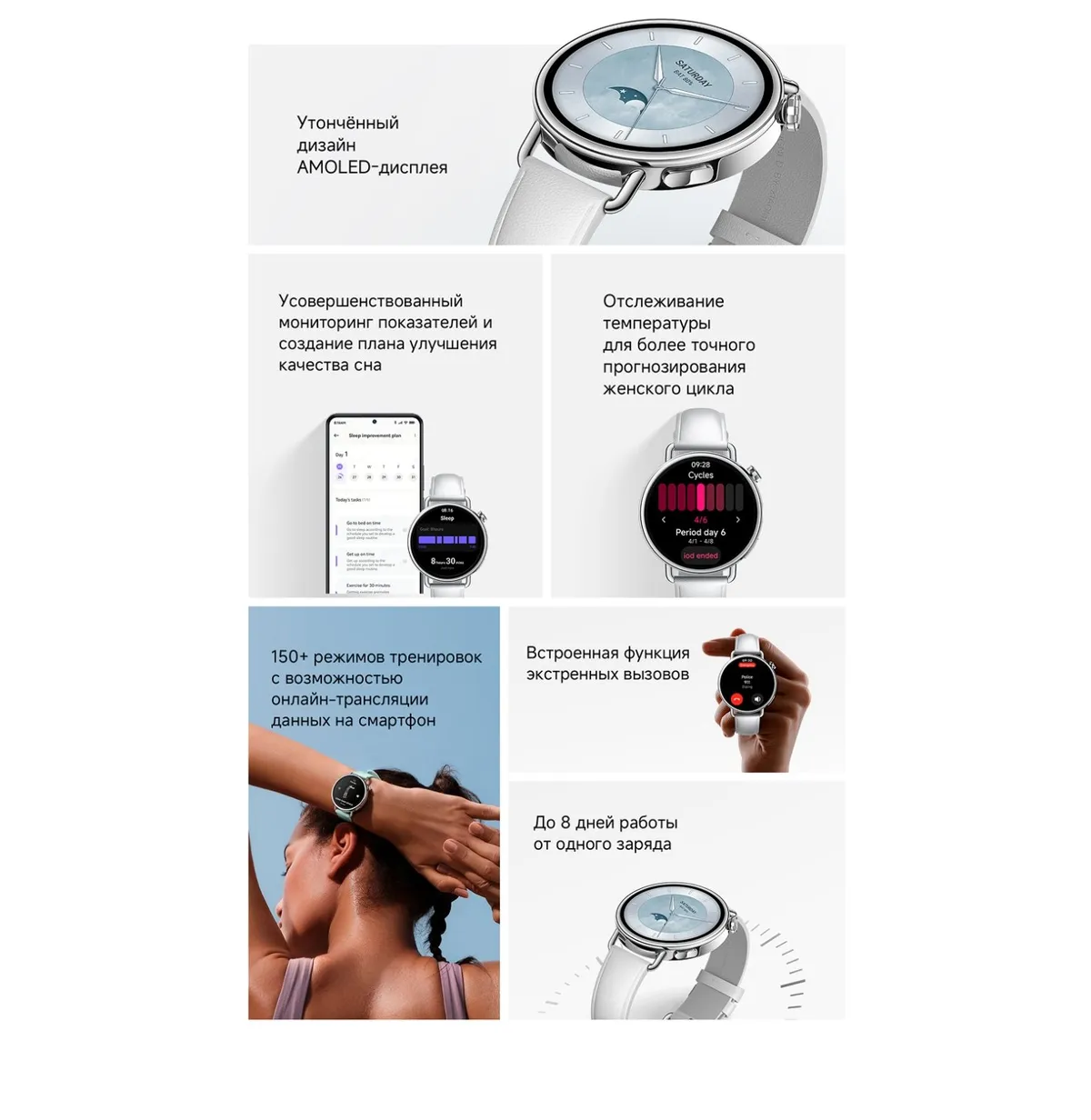Элегантный дизайн, тонкий корпус из нержавеющей стали и безупречный AMOLED-дисплей делают эти часы стильным дополнением к любому образу. Это не только аксессуар, но и надёжный помощник для контроля здоровья, тренировок и повседневных задач.